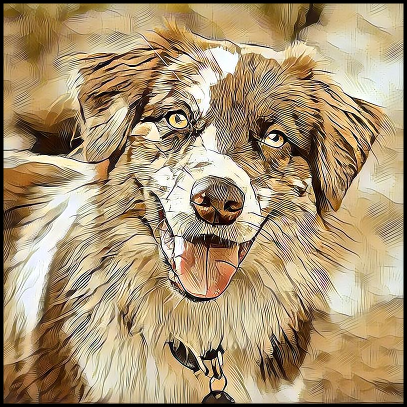 Australian Shepherd lovers, see 15 of our most popular art styles for this terrific breed below! Or create your own art with your own pictures by clicking “Make Art!” in the main menu.