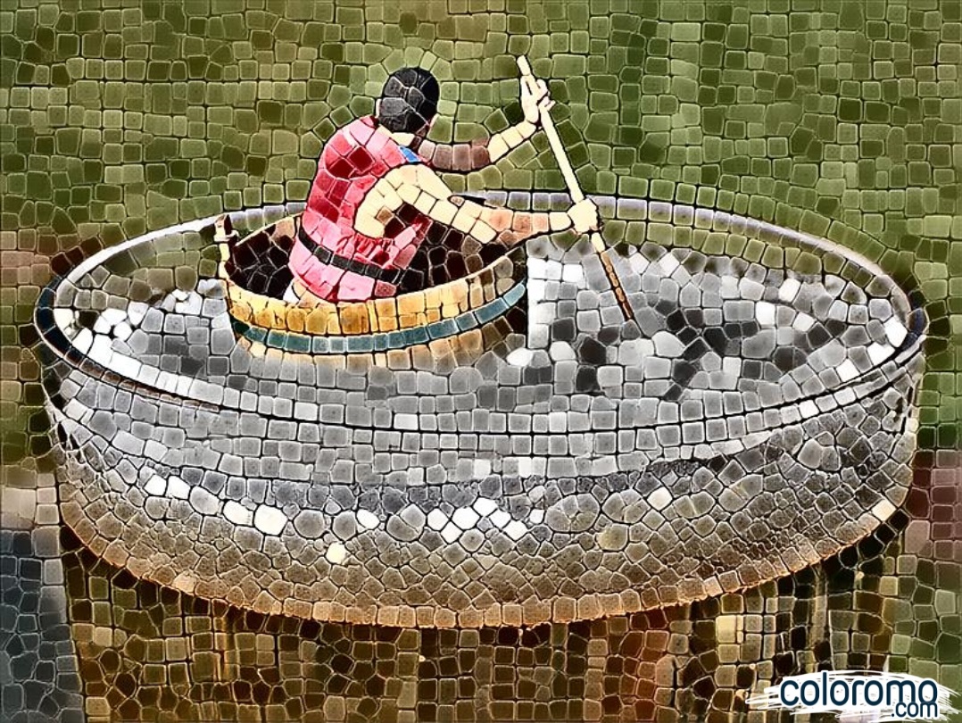 This art features a cat sleeping in a blue soup bowl, and its serene depiction captures the essence of relaxation and simplicity.