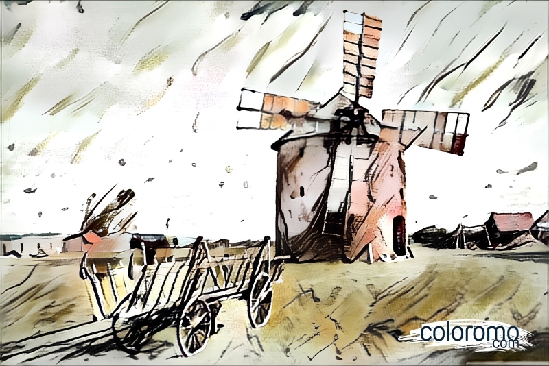The art piece beautifully captures the nostalgia of using windmills to harness the power of the wind.