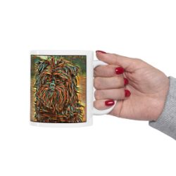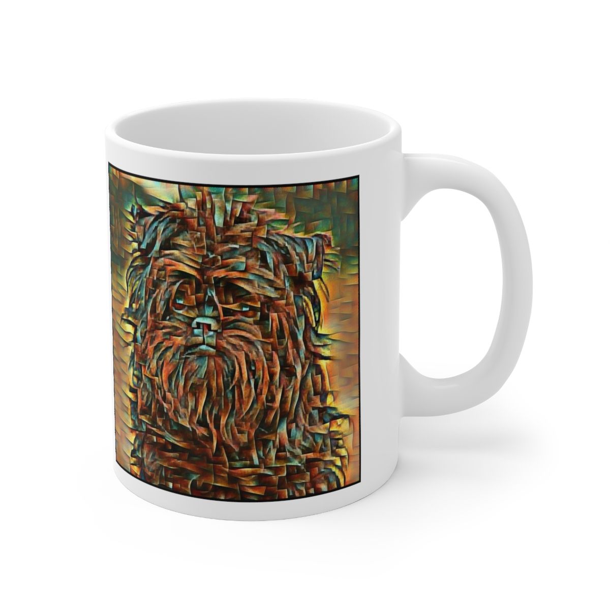 Keep cozy and warm with a nice cuppa, featuring the beloved Affenpinscher dog breed stylized in our Coloromo Cool Cubist art on a ceramic mug. Lead and BPA-free, these durable mugs are also microwave & dishwasher-safe. Made of white, resilient ceramic in an 11-ounce size, this is the perfect gift for coffee, tea, and hot chocolate lovers.