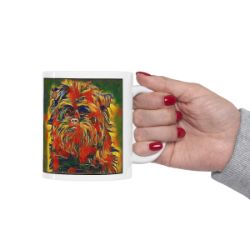 Keep cozy and warm with a nice cuppa, featuring the beloved Affenpinscher dog breed stylized in our Coloromo Garden Veggie art on a ceramic mug. Lead and BPA-free, these durable mugs are also microwave & dishwasher-safe. Made of white, resilient ceramic in an 11-ounce size, this is the perfect gift for coffee, tea, and hot chocolate lovers.