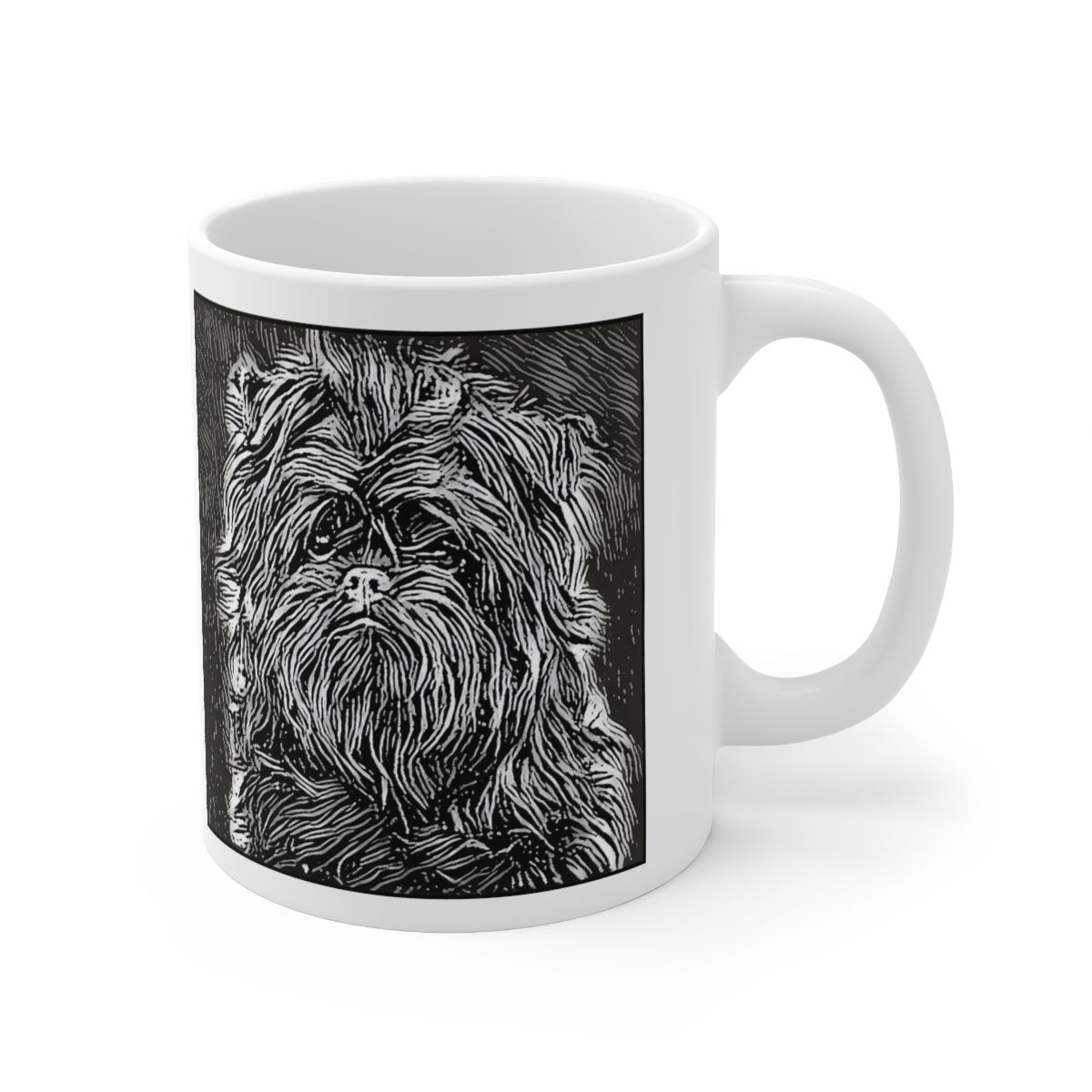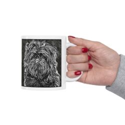 Keep cozy and warm with a nice cuppa, featuring the beloved Affenpinscher dog breed stylized in our Coloromo Licorice Lines art on a ceramic mug. Lead and BPA-free, these durable mugs are also microwave & dishwasher-safe. Made of white, resilient ceramic in an 11-ounce size, this is the perfect gift for coffee, tea, and hot chocolate lovers.
