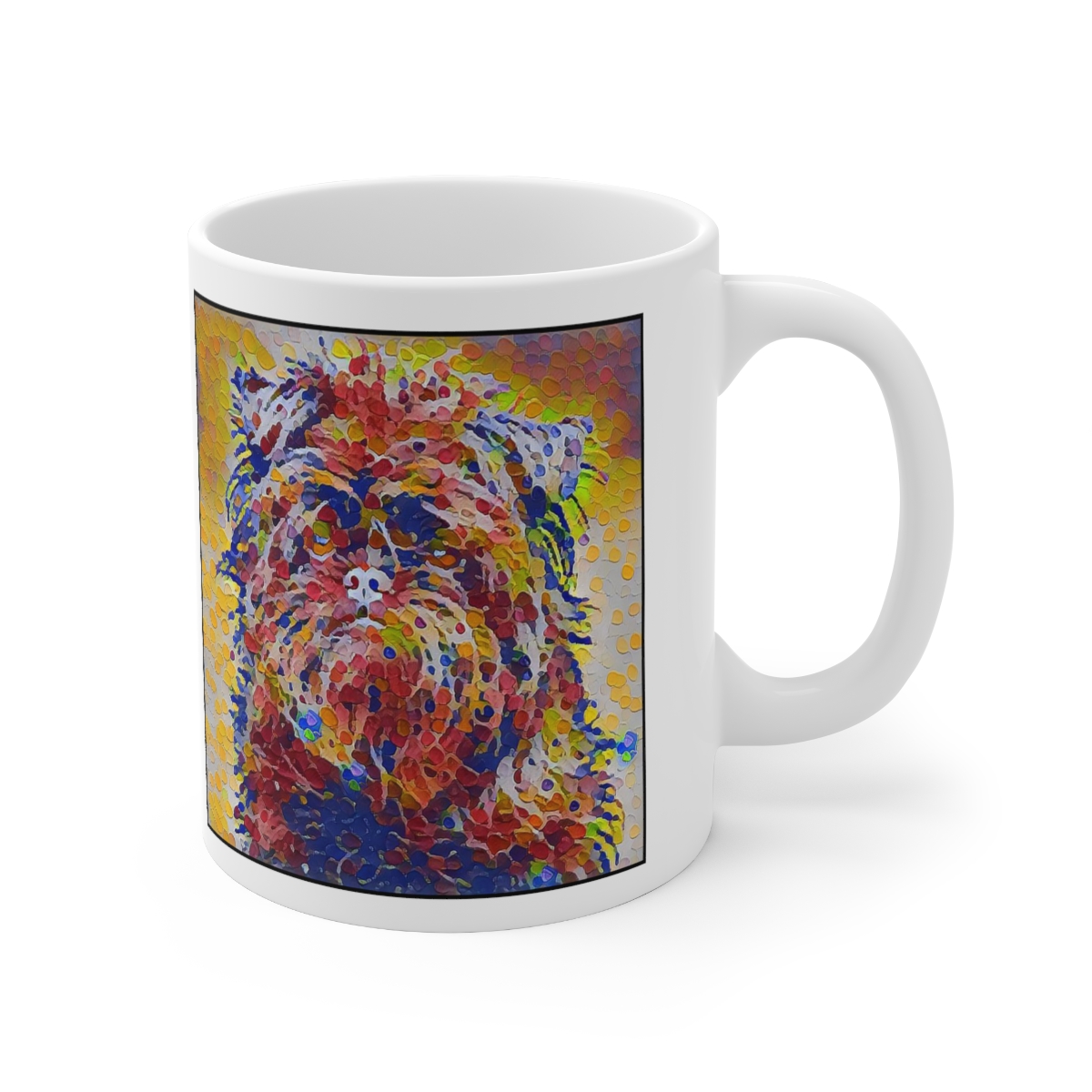 Keep cozy and warm with a nice cuppa, featuring the beloved Affenpinscher dog breed stylized in our Coloromo Party Confetti art on a ceramic mug. Lead and BPA-free, these durable mugs are also microwave & dishwasher-safe. Made of white, resilient ceramic in an 11-ounce size, this is the perfect gift for coffee, tea, and hot chocolate lovers.