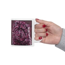 Keep cozy and warm with a nice cuppa, featuring the beloved Affenpinscher dog breed stylized in our Coloromo Plump Wine art on a ceramic mug. Lead and BPA-free, these durable mugs are also microwave & dishwasher-safe. Made of white, resilient ceramic in an 11-ounce size, this is the perfect gift for coffee, tea, and hot chocolate lovers.