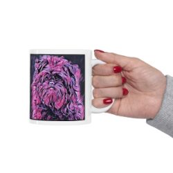 Keep cozy and warm with a nice cuppa, featuring the beloved Affenpinscher dog breed stylized in our Coloromo Violet Femmes art on a ceramic mug. Lead and BPA-free, these durable mugs are also microwave & dishwasher-safe. Made of white, resilient ceramic in an 11-ounce size, this is the perfect gift for coffee, tea, and hot chocolate lovers.