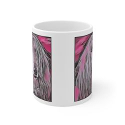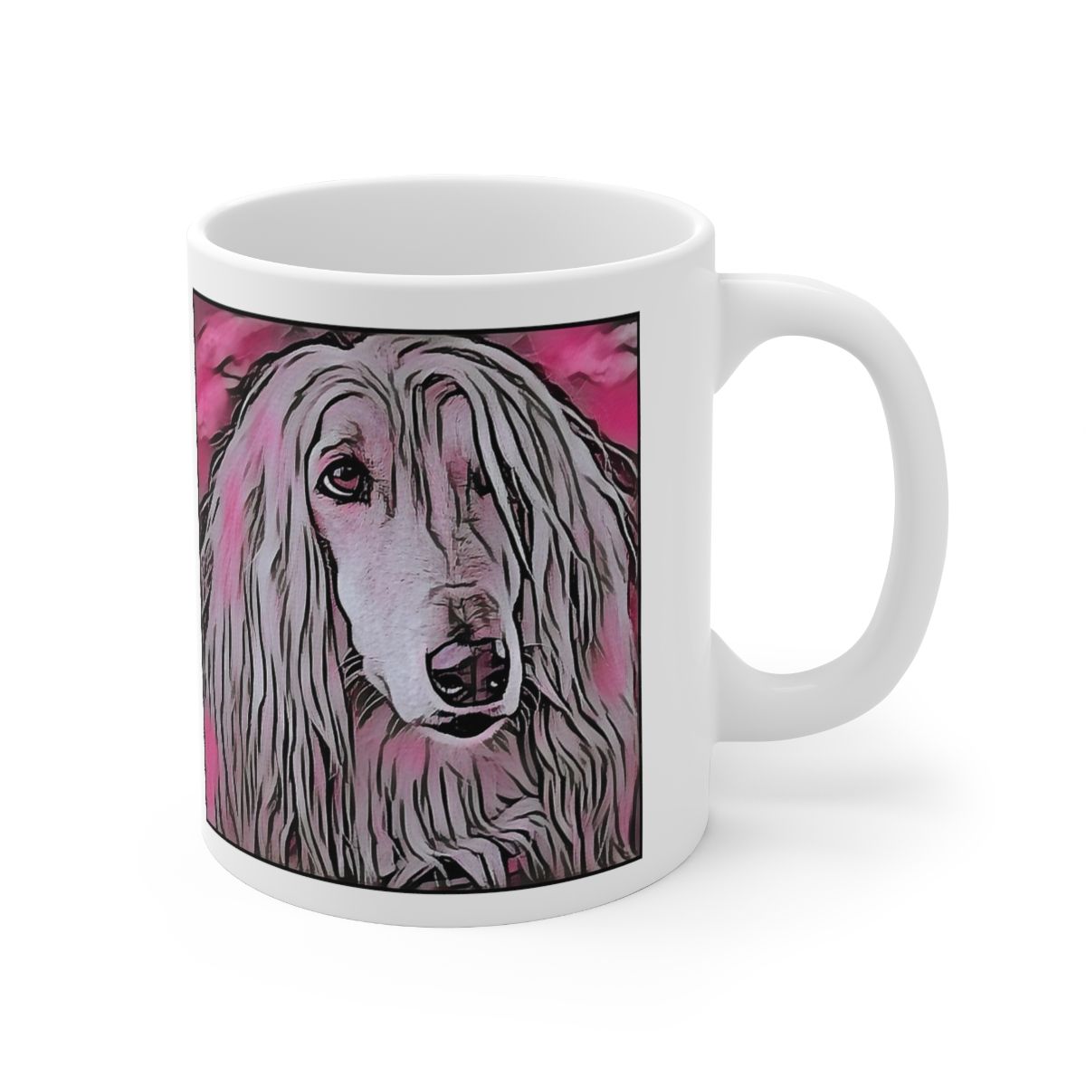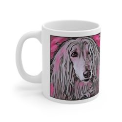 Keep cozy and warm with a nice cuppa, featuring the beloved Afghan Hound dog breed stylized in our Coloromo Comic Pink art on a ceramic mug. Lead and BPA-free, these durable mugs are also microwave & dishwasher-safe. Made of white, resilient ceramic in an 11-ounce size, this is the perfect gift for coffee, tea, and hot chocolate lovers.