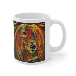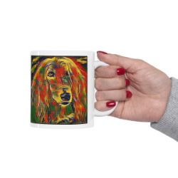 Keep cozy and warm with a nice cuppa, featuring the beloved Afghan Hound dog breed stylized in our Coloromo Garden Veggie art on a ceramic mug. Lead and BPA-free, these durable mugs are also microwave & dishwasher-safe. Made of white, resilient ceramic in an 11-ounce size, this is the perfect gift for coffee, tea, and hot chocolate lovers.