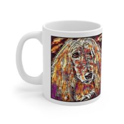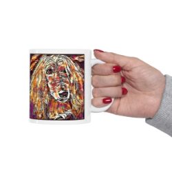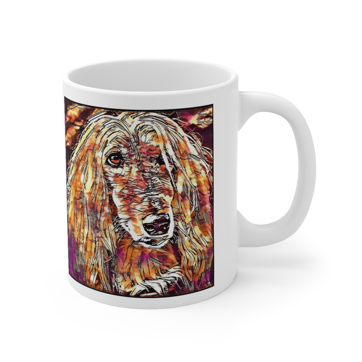 Keep cozy and warm with a nice cuppa, featuring the beloved Afghan Hound dog breed stylized in our Coloromo Hipster art on a ceramic mug. Lead and BPA-free, these durable mugs are also microwave & dishwasher-safe. Made of white, resilient ceramic in an 11-ounce size, this is the perfect gift for coffee, tea, and hot chocolate lovers.