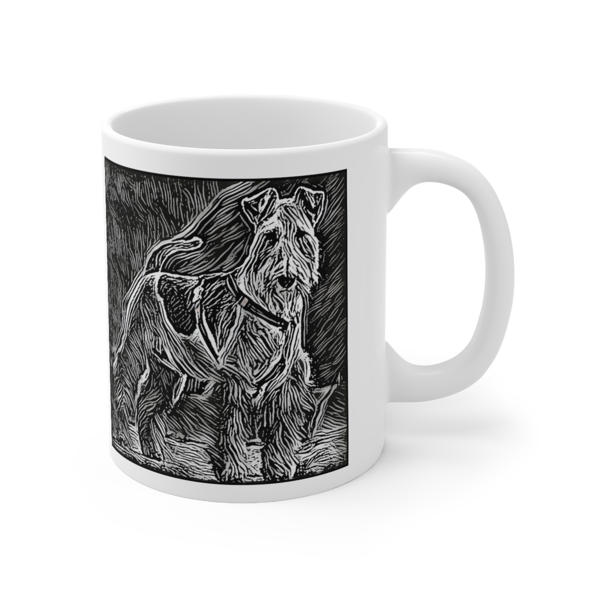 Keep cozy and warm with a nice cuppa, featuring the beloved Airedale Terrier dog breed stylized in our Coloromo Licorice Lines art on a ceramic mug. Lead and BPA-free, these durable mugs are also microwave & dishwasher-safe. Made of white, resilient ceramic in an 11-ounce size, this is the perfect gift for coffee, tea, and hot chocolate lovers.