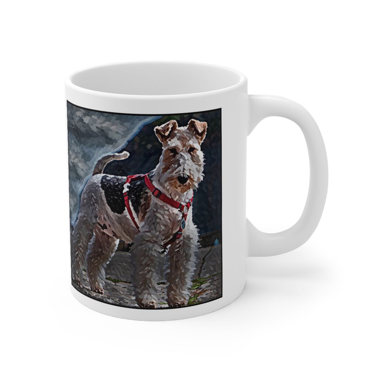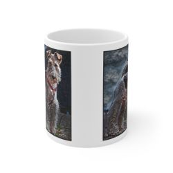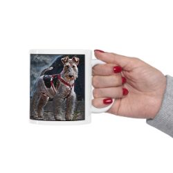 Keep cozy and warm with a nice cuppa, featuring the beloved Airedale Terrier dog breed stylized in our Coloromo Lord Lil Bit art on a ceramic mug. Lead and BPA-free, these durable mugs are also microwave & dishwasher-safe. Made of white, resilient ceramic in an 11-ounce size, this is the perfect gift for coffee, tea, and hot chocolate lovers.