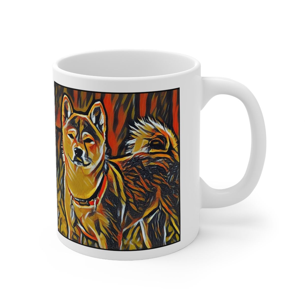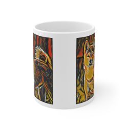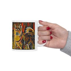 Keep cozy and warm with a nice cuppa, featuring the beloved Akita Shiba Inu dog breed stylized in our Coloromo Graffiti Haus art on a ceramic mug. Lead and BPA-free, these durable mugs are also microwave & dishwasher-safe. Made of white, resilient ceramic in an 11-ounce size, this is the perfect gift for coffee, tea, and hot chocolate lovers.