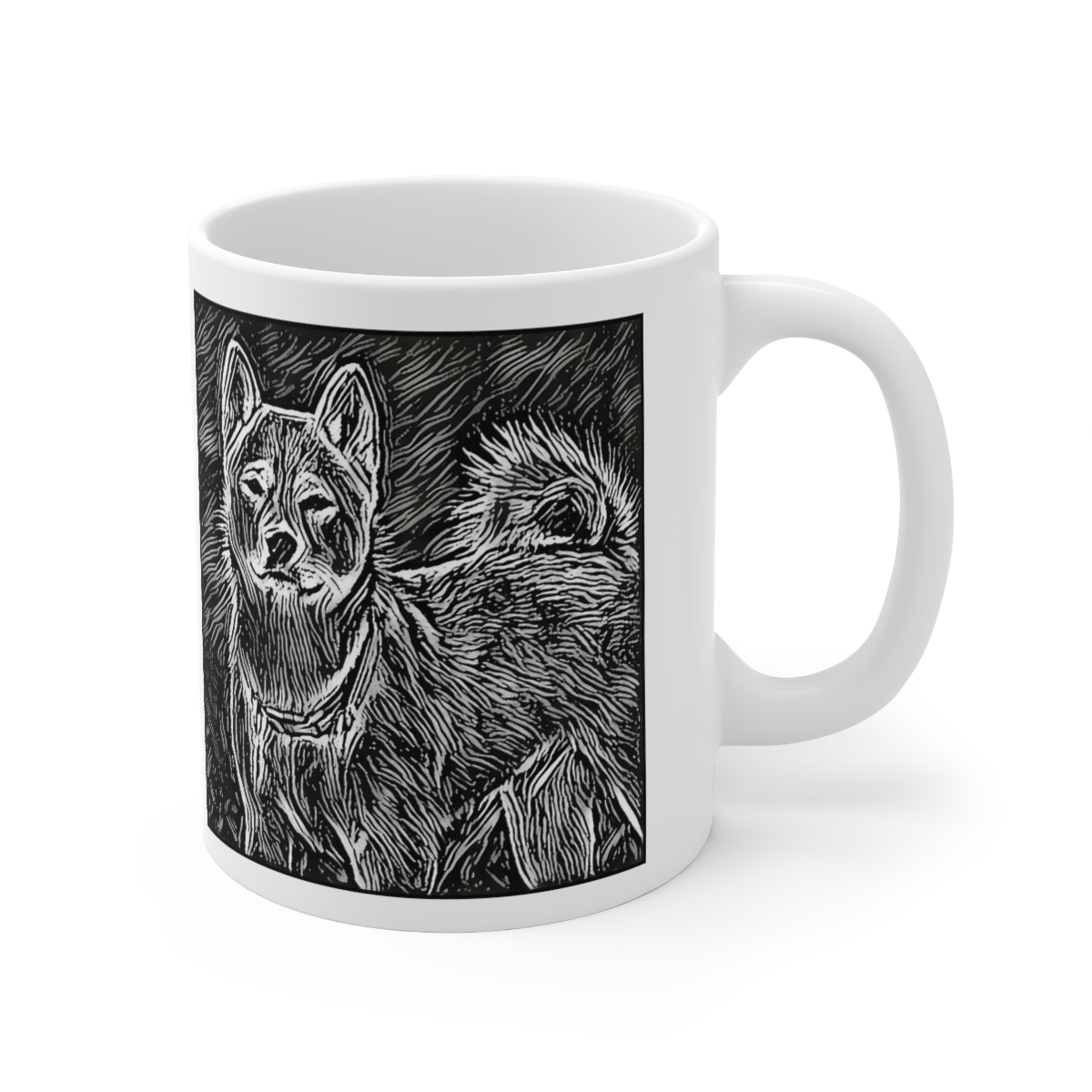 Keep cozy and warm with a nice cuppa, featuring the beloved Akita Shiba Inu dog breed stylized in our Coloromo Licorice Lines art on a ceramic mug. Lead and BPA-free, these durable mugs are also microwave & dishwasher-safe. Made of white, resilient ceramic in an 11-ounce size, this is the perfect gift for coffee, tea, and hot chocolate lovers.