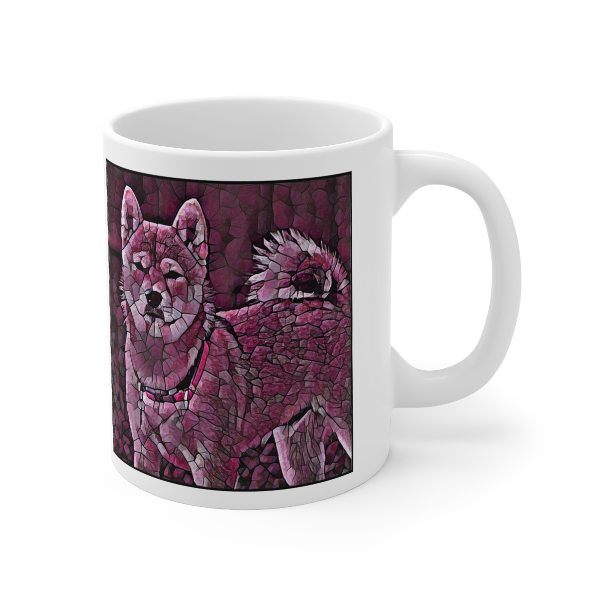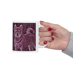 Keep cozy and warm with a nice cuppa, featuring the beloved Akita Shiba Inu dog breed stylized in our Coloromo Plump Wine art on a ceramic mug. Lead and BPA-free, these durable mugs are also microwave & dishwasher-safe. Made of white, resilient ceramic in an 11-ounce size, this is the perfect gift for coffee, tea, and hot chocolate lovers.