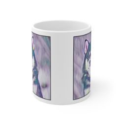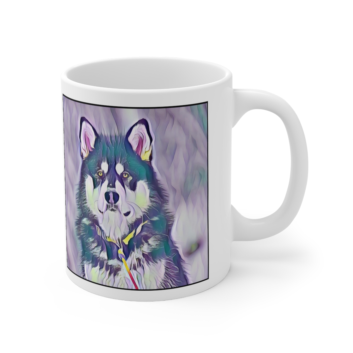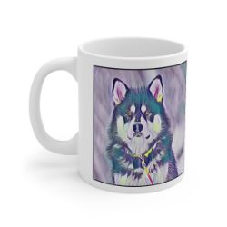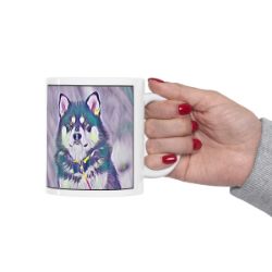 Keep cozy and warm with a nice cuppa, featuring the beloved Alaskan Malamute dog breed stylized in our Coloromo Lavender Ice art on a ceramic mug. Lead and BPA-free, these durable mugs are also microwave & dishwasher-safe. Made of white, resilient ceramic in an 11-ounce size, this is the perfect gift for coffee, tea, and hot chocolate lovers.