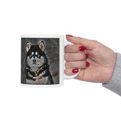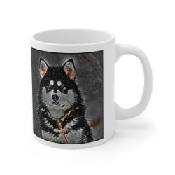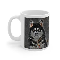 Keep cozy and warm with a nice cuppa, featuring the beloved Alaskan Malamute dog breed stylized in our Coloromo Lord Lil Bit art on a ceramic mug. Lead and BPA-free, these durable mugs are also microwave & dishwasher-safe. Made of white, resilient ceramic in an 11-ounce size, this is the perfect gift for coffee, tea, and hot chocolate lovers.