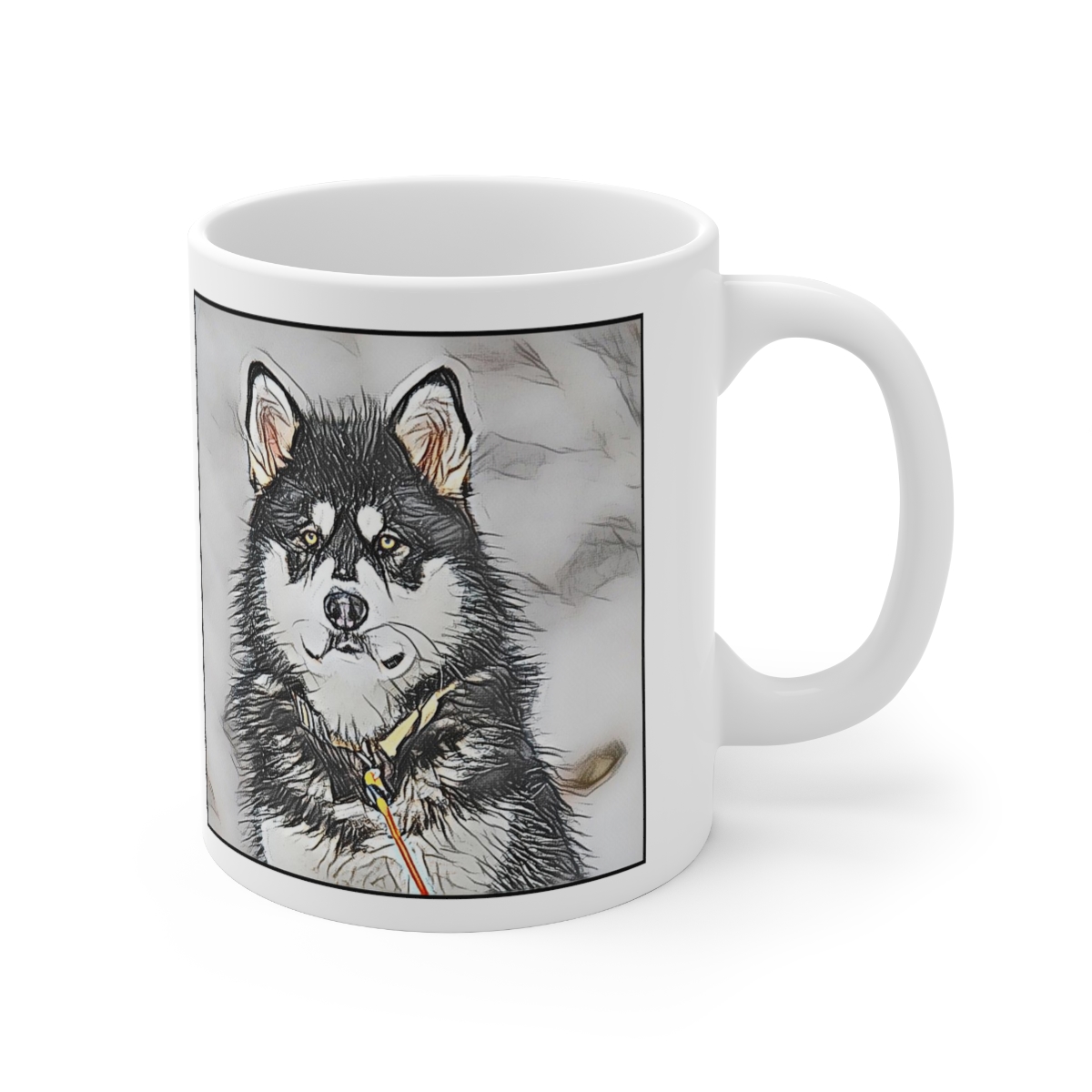 Keep cozy and warm with a nice cuppa, featuring the beloved Alaskan Malamute dog breed stylized in our Coloromo Penciled In art on a ceramic mug. Lead and BPA-free, these durable mugs are also microwave & dishwasher-safe. Made of white, resilient ceramic in an 11-ounce size, this is the perfect gift for coffee, tea, and hot chocolate lovers.
