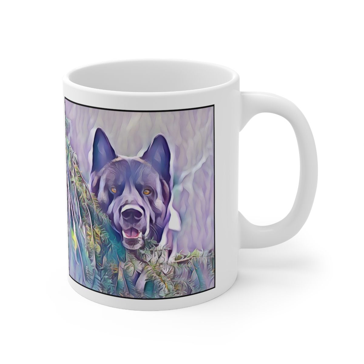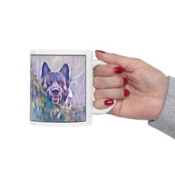 Keep cozy and warm with a nice cuppa, featuring the beloved American Akita dog breed stylized in our Coloromo Lavender Ice art on a ceramic mug. Lead and BPA-free, these durable mugs are also microwave & dishwasher-safe. Made of white, resilient ceramic in an 11-ounce size, this is the perfect gift for coffee, tea, and hot chocolate lovers.