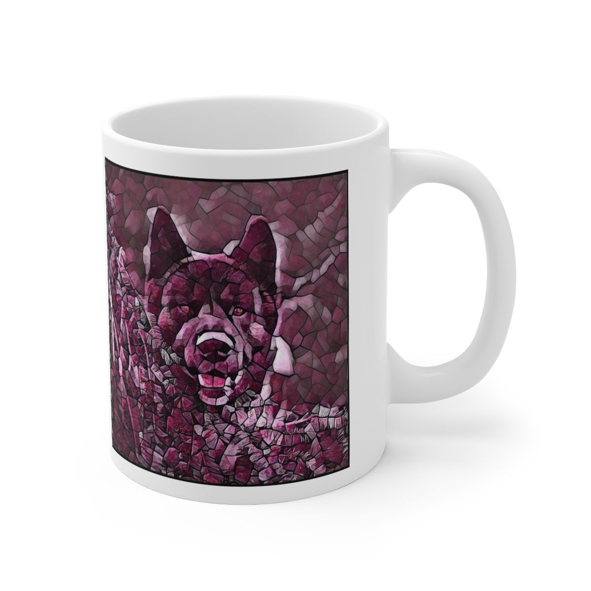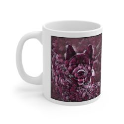 Keep cozy and warm with a nice cuppa, featuring the beloved American Akita dog breed stylized in our Coloromo Plump Wine art on a ceramic mug. Lead and BPA-free, these durable mugs are also microwave & dishwasher-safe. Made of white, resilient ceramic in an 11-ounce size, this is the perfect gift for coffee, tea, and hot chocolate lovers.