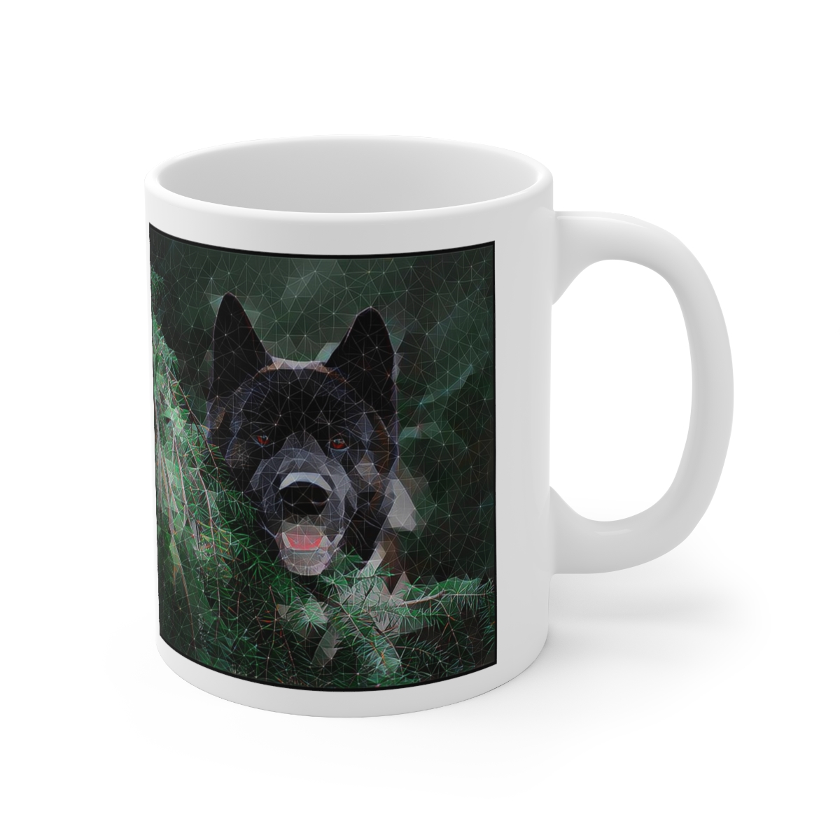 Keep cozy and warm with a nice cuppa, featuring the beloved American Akita dog breed stylized in our Coloromo Rock Candy art on a ceramic mug. Lead and BPA-free, these durable mugs are also microwave & dishwasher-safe. Made of white, resilient ceramic in an 11-ounce size, this is the perfect gift for coffee, tea, and hot chocolate lovers.