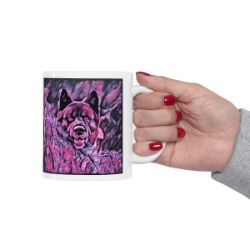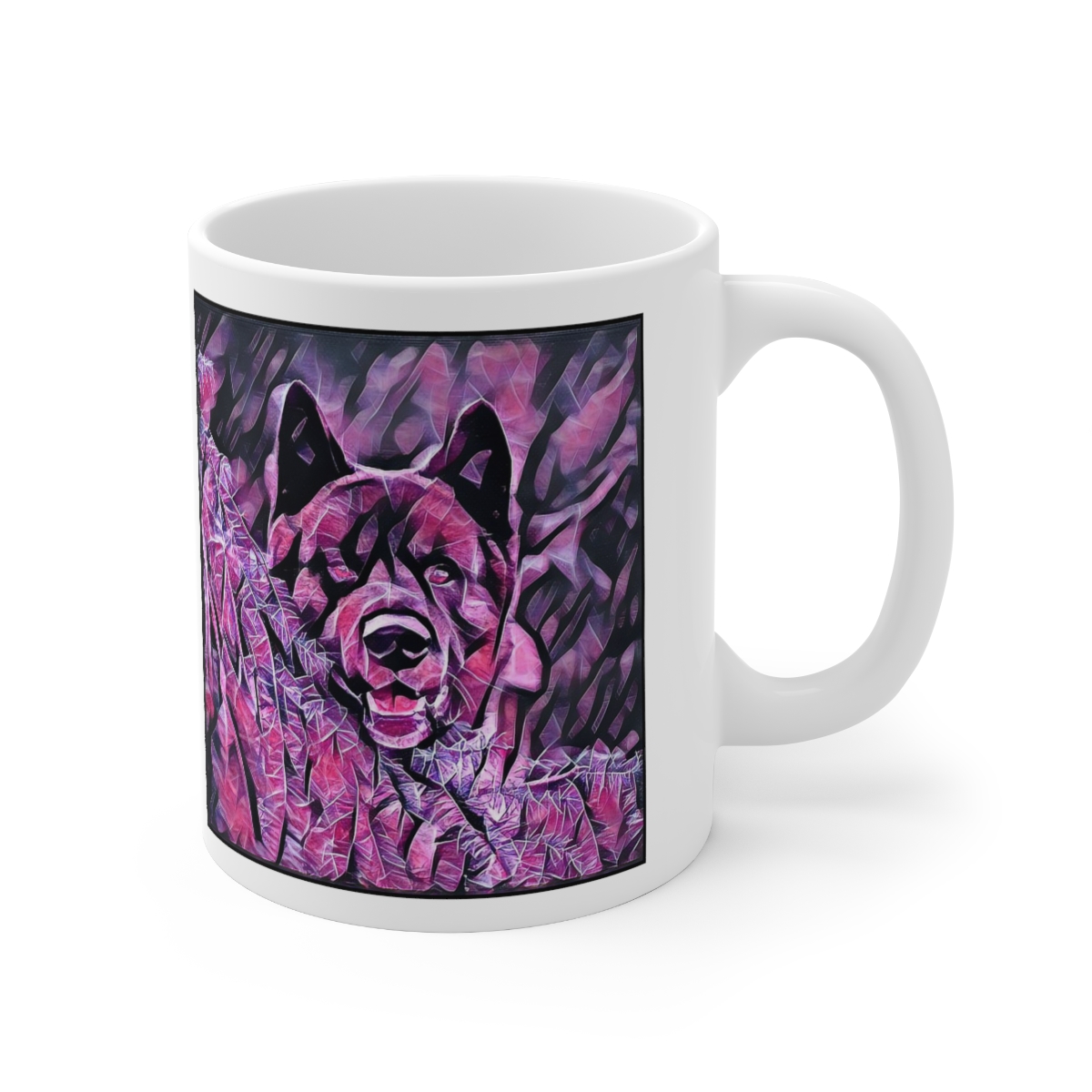 Keep cozy and warm with a nice cuppa, featuring the beloved American Akita dog breed stylized in our Coloromo Violet Femmes art on a ceramic mug. Lead and BPA-free, these durable mugs are also microwave & dishwasher-safe. Made of white, resilient ceramic in an 11-ounce size, this is the perfect gift for coffee, tea, and hot chocolate lovers.