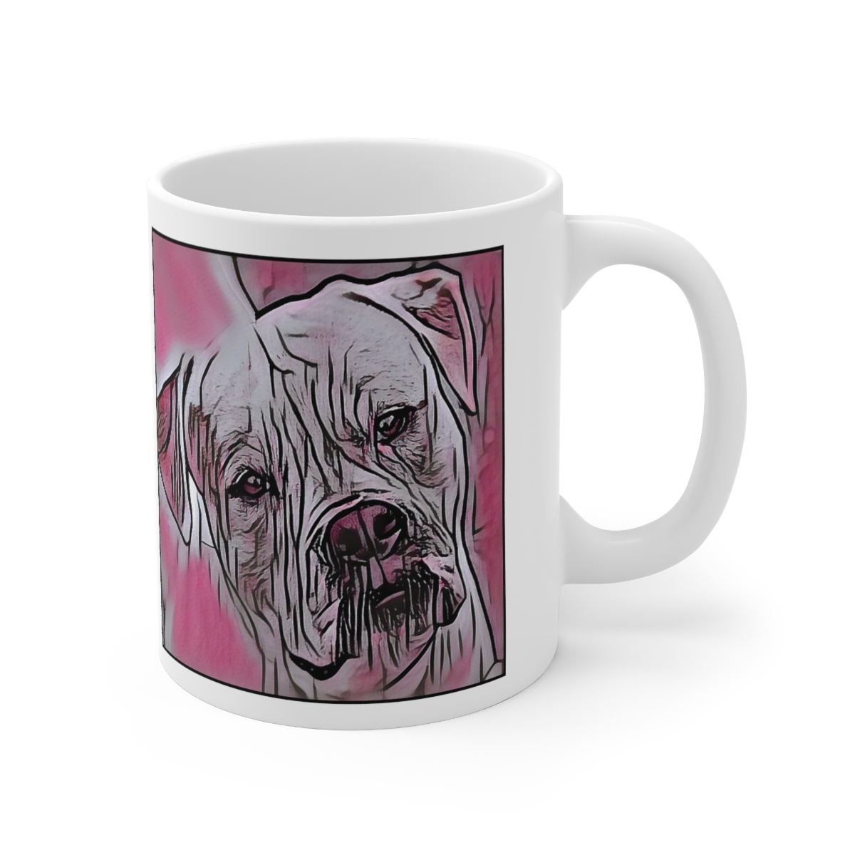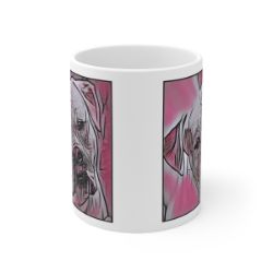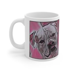 Keep cozy and warm with a nice cuppa, featuring the beloved American Bulldog dog breed stylized in our Coloromo Comic Pink art on a ceramic mug. Lead and BPA-free, these durable mugs are also microwave & dishwasher-safe. Made of white, resilient ceramic in an 11-ounce size, this is the perfect gift for coffee, tea, and hot chocolate lovers.