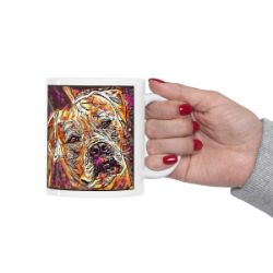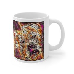 Keep cozy and warm with a nice cuppa, featuring the beloved American Bulldog dog breed stylized in our Coloromo Hipster art on a ceramic mug. Lead and BPA-free, these durable mugs are also microwave & dishwasher-safe. Made of white, resilient ceramic in an 11-ounce size, this is the perfect gift for coffee, tea, and hot chocolate lovers.