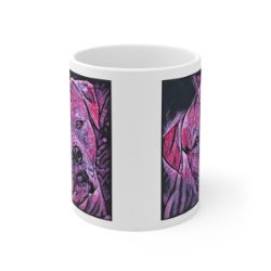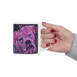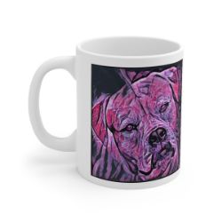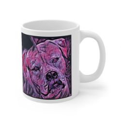Keep cozy and warm with a nice cuppa, featuring the beloved American Bulldog dog breed stylized in our Coloromo Violet Femmes art on a ceramic mug. Lead and BPA-free, these durable mugs are also microwave & dishwasher-safe. Made of white, resilient ceramic in an 11-ounce size, this is the perfect gift for coffee, tea, and hot chocolate lovers.