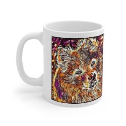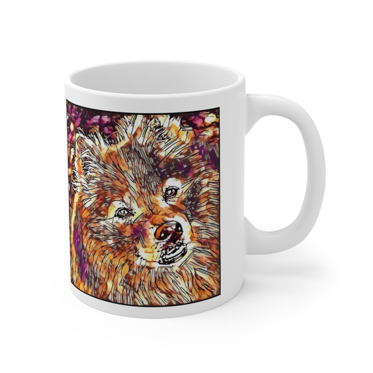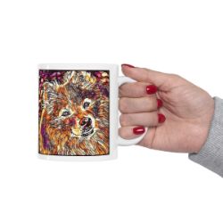 Keep cozy and warm with a nice cuppa, featuring the beloved American Eskimo dog breed stylized in our Coloromo Hipster art on a ceramic mug. Lead and BPA-free, these durable mugs are also microwave & dishwasher-safe. Made of white, resilient ceramic in an 11-ounce size, this is the perfect gift for coffee, tea, and hot chocolate lovers.