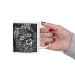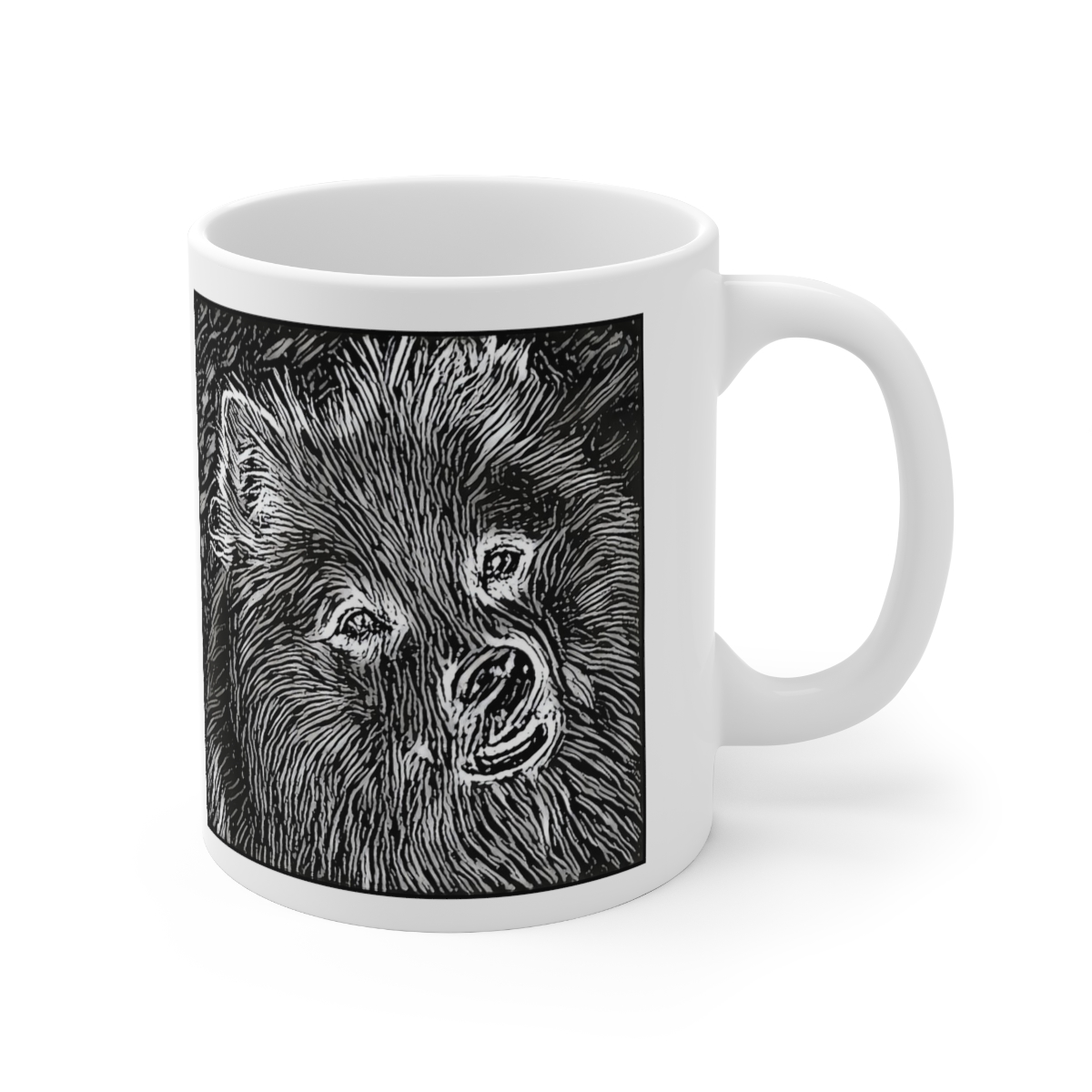 Keep cozy and warm with a nice cuppa, featuring the beloved American Eskimo dog breed stylized in our Coloromo Licorice Lines art on a ceramic mug. Lead and BPA-free, these durable mugs are also microwave & dishwasher-safe. Made of white, resilient ceramic in an 11-ounce size, this is the perfect gift for coffee, tea, and hot chocolate lovers.