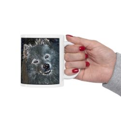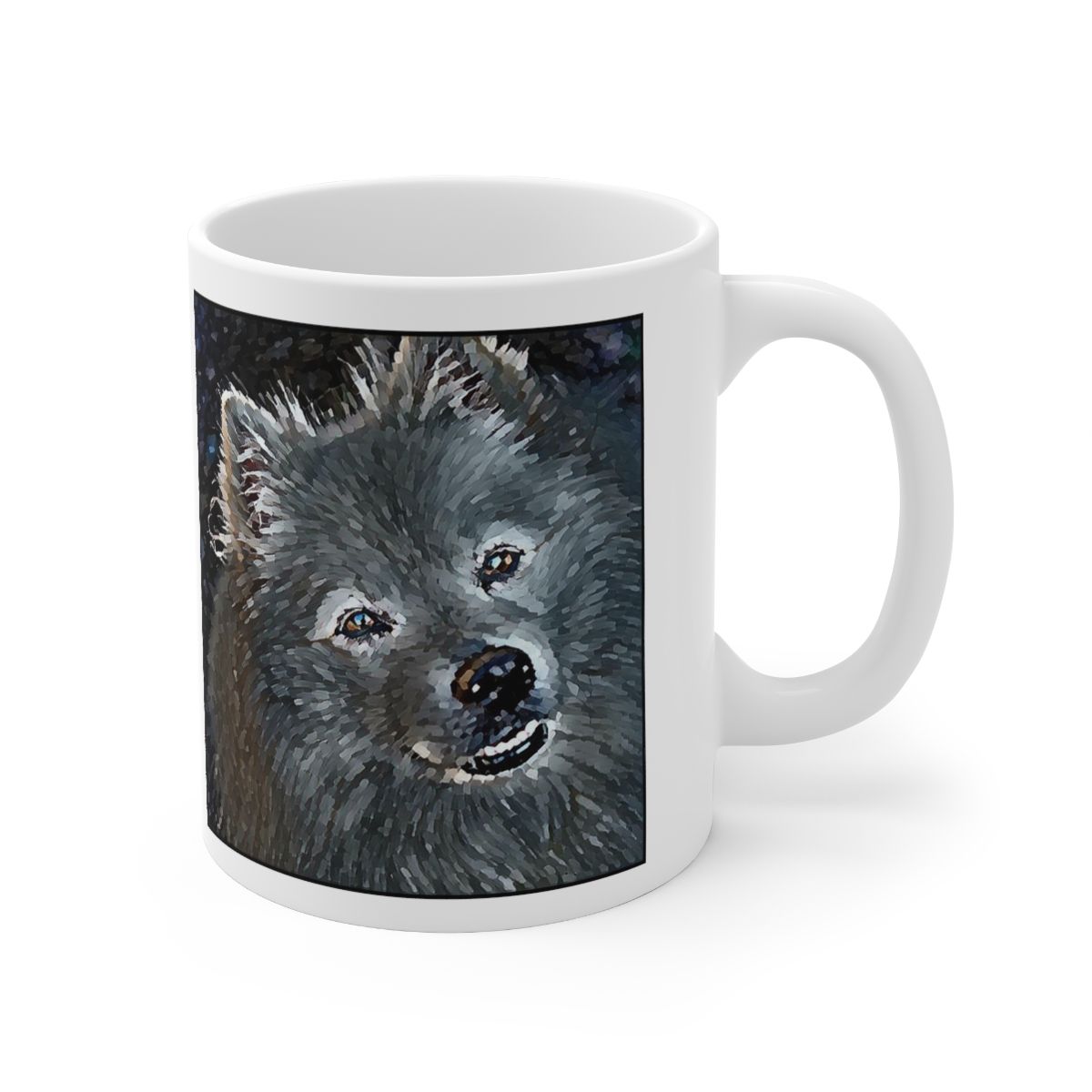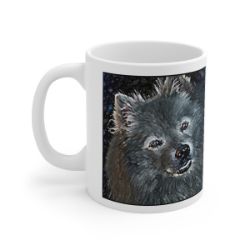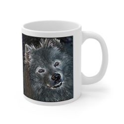 Keep cozy and warm with a nice cuppa, featuring the beloved American Eskimo dog breed stylized in our Coloromo Lord Lil Bit art on a ceramic mug. Lead and BPA-free, these durable mugs are also microwave & dishwasher-safe. Made of white, resilient ceramic in an 11-ounce size, this is the perfect gift for coffee, tea, and hot chocolate lovers.