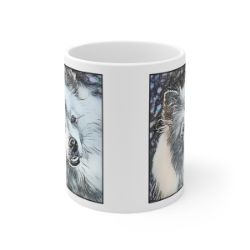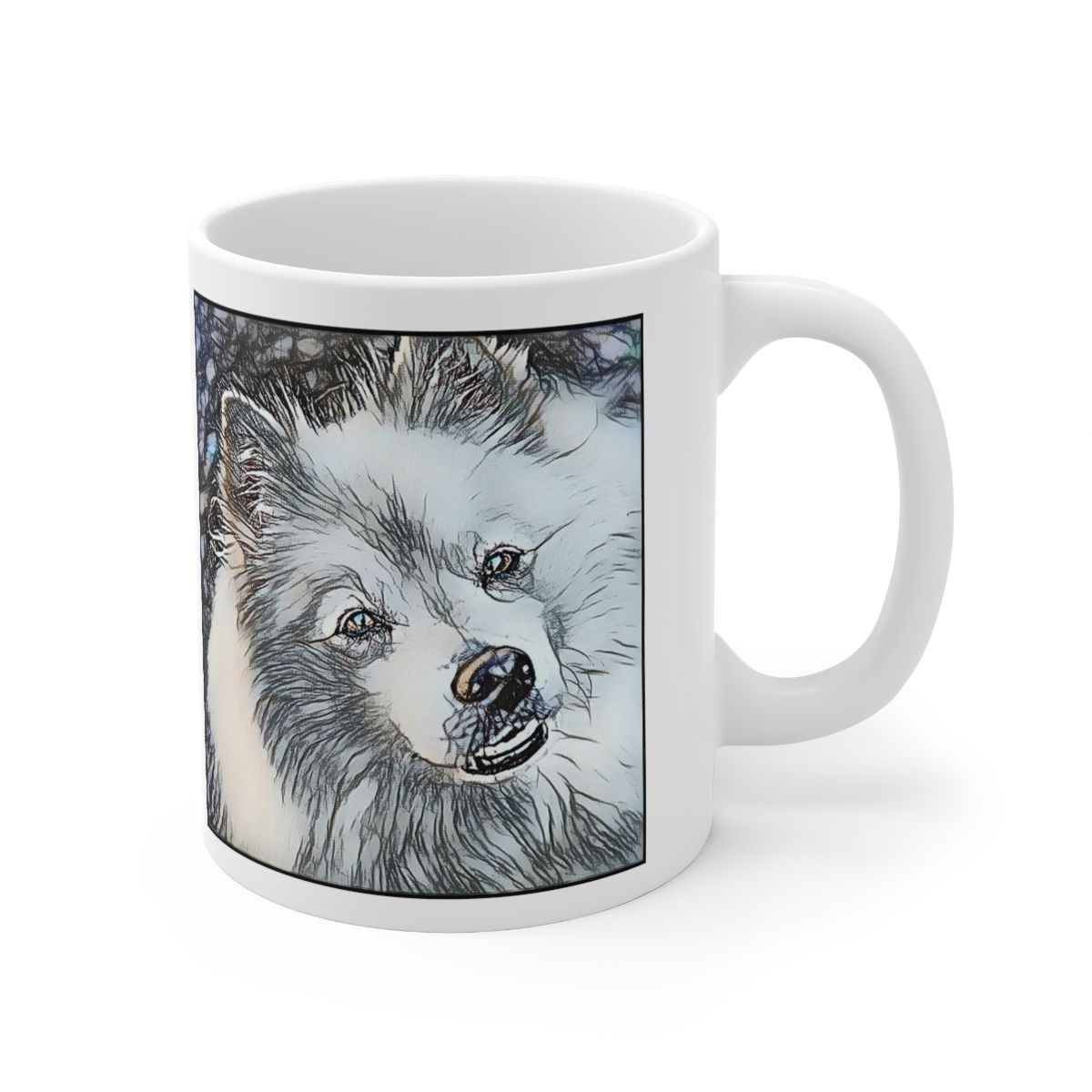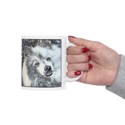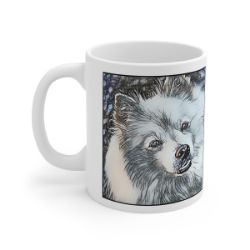 Keep cozy and warm with a nice cuppa, featuring the beloved American Eskimo dog breed stylized in our Coloromo Penciled In art on a ceramic mug. Lead and BPA-free, these durable mugs are also microwave & dishwasher-safe. Made of white, resilient ceramic in an 11-ounce size, this is the perfect gift for coffee, tea, and hot chocolate lovers.
