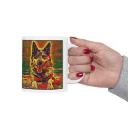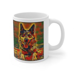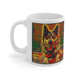 Keep cozy and warm with a nice cuppa, featuring the beloved Australian Cattle Dog dog breed stylized in our Coloromo Garden Veggie art on a ceramic mug. Lead and BPA-free, these durable mugs are also microwave & dishwasher-safe. Made of white, resilient ceramic in an 11-ounce size, this is the perfect gift for coffee, tea, and hot chocolate lovers.
