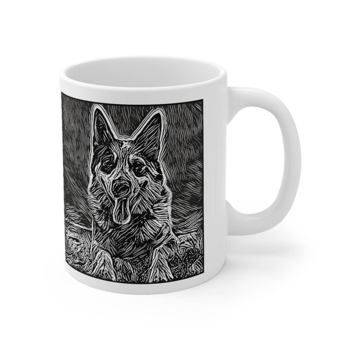 Keep cozy and warm with a nice cuppa, featuring the beloved Australian Cattle Dog dog breed stylized in our Coloromo Licorice Lines art on a ceramic mug. Lead and BPA-free, these durable mugs are also microwave & dishwasher-safe. Made of white, resilient ceramic in an 11-ounce size, this is the perfect gift for coffee, tea, and hot chocolate lovers.