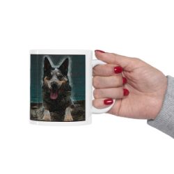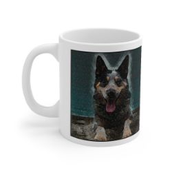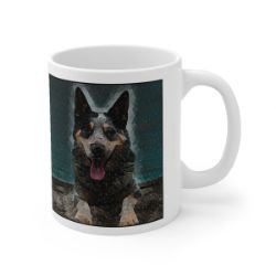 Keep cozy and warm with a nice cuppa, featuring the beloved Australian Cattle Dog dog breed stylized in our Coloromo Rock Candy art on a ceramic mug. Lead and BPA-free, these durable mugs are also microwave & dishwasher-safe. Made of white, resilient ceramic in an 11-ounce size, this is the perfect gift for coffee, tea, and hot chocolate lovers.