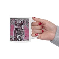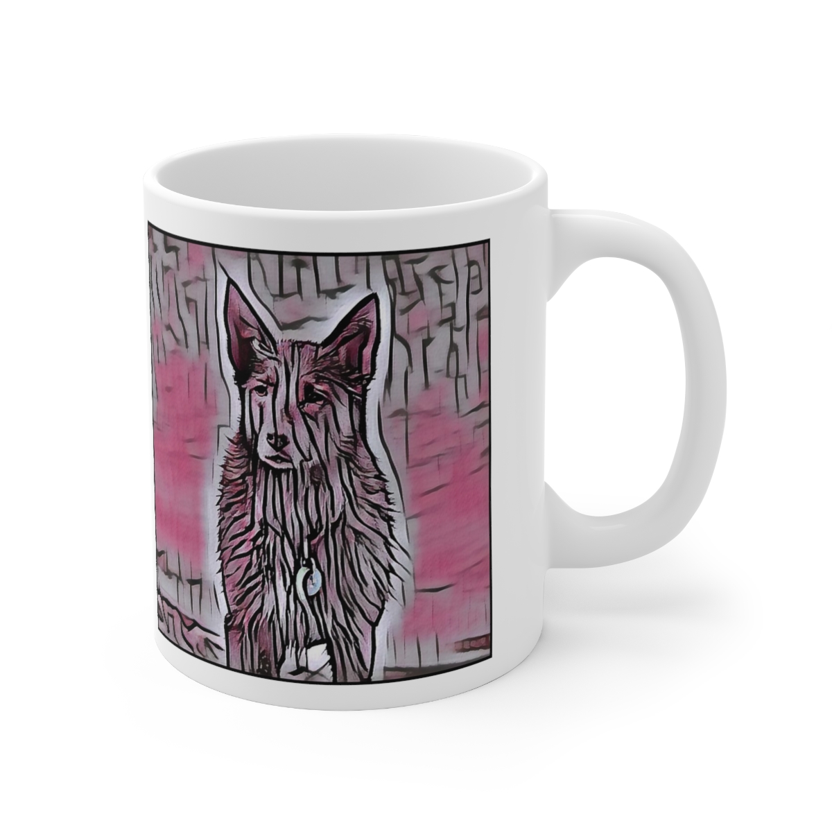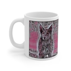 Keep cozy and warm with a nice cuppa, featuring the beloved Australian Kelpie dog breed stylized in our Coloromo Comic Pink art on a ceramic mug. Lead and BPA-free, these durable mugs are also microwave & dishwasher-safe. Made of white, resilient ceramic in an 11-ounce size, this is the perfect gift for coffee, tea, and hot chocolate lovers.