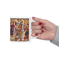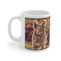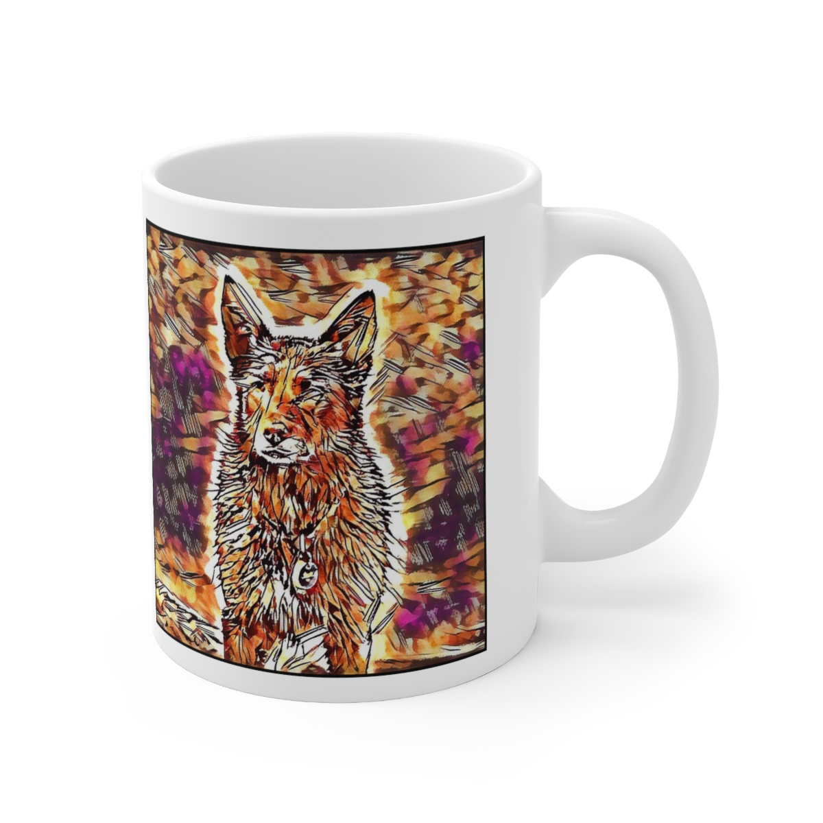 Keep cozy and warm with a nice cuppa, featuring the beloved Australian Kelpie dog breed stylized in our Coloromo Hipster art on a ceramic mug. Lead and BPA-free, these durable mugs are also microwave & dishwasher-safe. Made of white, resilient ceramic in an 11-ounce size, this is the perfect gift for coffee, tea, and hot chocolate lovers.