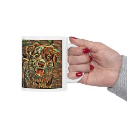 Keep cozy and warm with a nice cuppa, featuring the beloved Australian Shepherd dog breed stylized in our Coloromo Cool Cubist art on a ceramic mug. Lead and BPA-free, these durable mugs are also microwave & dishwasher-safe. Made of white, resilient ceramic in an 11-ounce size, this is the perfect gift for coffee, tea, and hot chocolate lovers.