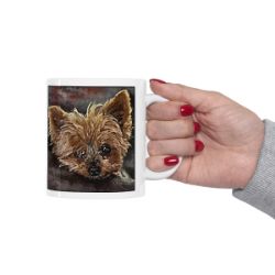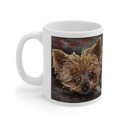Keep cozy and warm with a nice cuppa, featuring the beloved Australian Terrier dog breed stylized in our Coloromo Lord Lil Bit art on a ceramic mug. Lead and BPA-free, these durable mugs are also microwave & dishwasher-safe. Made of white, resilient ceramic in an 11-ounce size, this is the perfect gift for coffee, tea, and hot chocolate lovers.