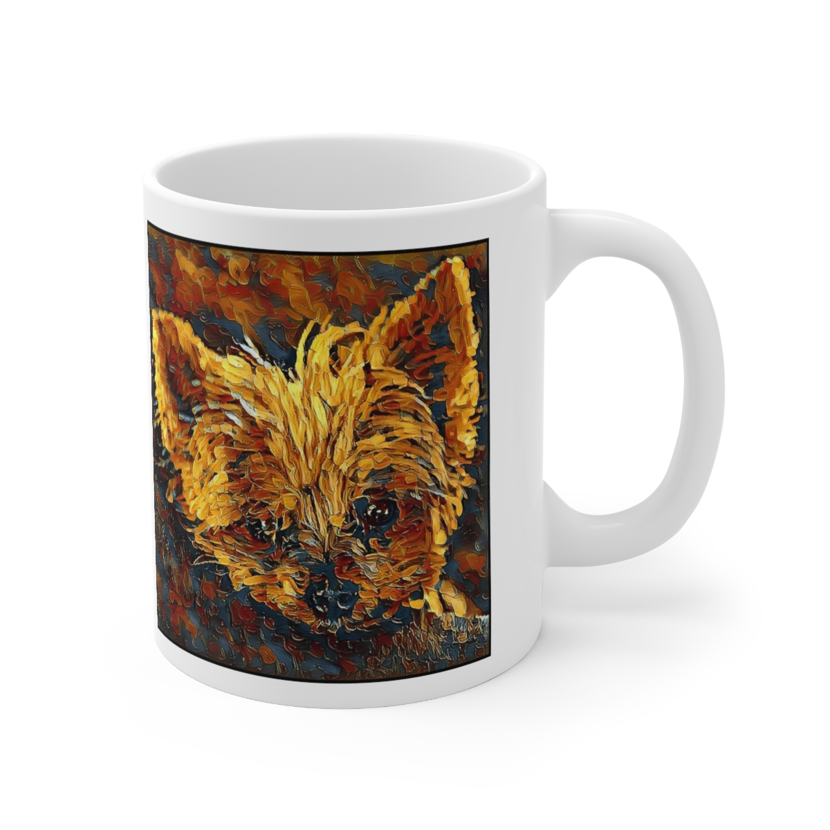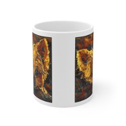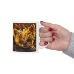 Keep cozy and warm with a nice cuppa, featuring the beloved Australian Terrier dog breed stylized in our Coloromo Painterly art on a ceramic mug. Lead and BPA-free, these durable mugs are also microwave & dishwasher-safe. Made of white, resilient ceramic in an 11-ounce size, this is the perfect gift for coffee, tea, and hot chocolate lovers.