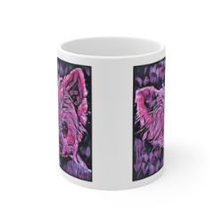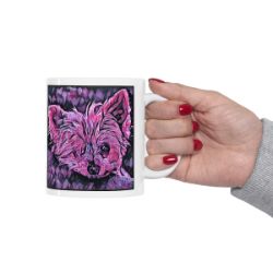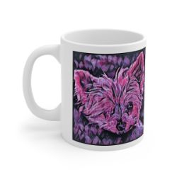 Keep cozy and warm with a nice cuppa, featuring the beloved Australian Terrier dog breed stylized in our Coloromo Violet Femmes art on a ceramic mug. Lead and BPA-free, these durable mugs are also microwave & dishwasher-safe. Made of white, resilient ceramic in an 11-ounce size, this is the perfect gift for coffee, tea, and hot chocolate lovers.