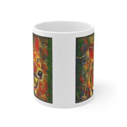 Keep cozy and warm with a nice cuppa, featuring the beloved Basenji dog breed stylized in our Coloromo Garden Veggie art on a ceramic mug. Lead and BPA-free, these durable mugs are also microwave & dishwasher-safe. Made of white, resilient ceramic in an 11-ounce size, this is the perfect gift for coffee, tea, and hot chocolate lovers.