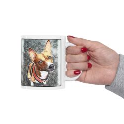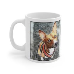Keep cozy and warm with a nice cuppa, featuring the beloved Basenji dog breed stylized in our Coloromo Penciled In art on a ceramic mug. Lead and BPA-free, these durable mugs are also microwave & dishwasher-safe. Made of white, resilient ceramic in an 11-ounce size, this is the perfect gift for coffee, tea, and hot chocolate lovers.