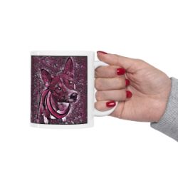 Keep cozy and warm with a nice cuppa, featuring the beloved Basenji dog breed stylized in our Coloromo Plump Wine art on a ceramic mug. Lead and BPA-free, these durable mugs are also microwave & dishwasher-safe. Made of white, resilient ceramic in an 11-ounce size, this is the perfect gift for coffee, tea, and hot chocolate lovers.