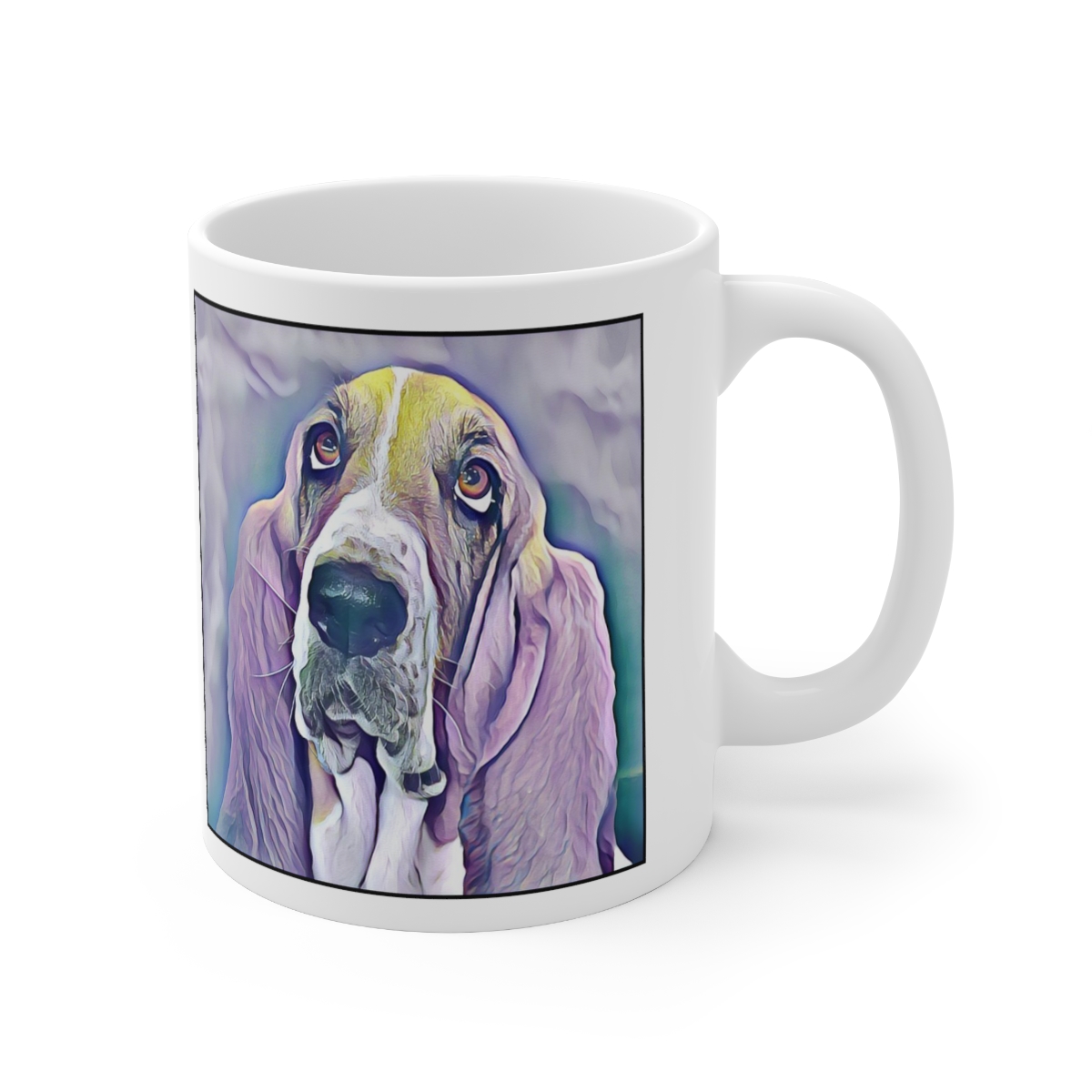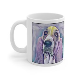 Keep cozy and warm with a nice cuppa, featuring the beloved Bassett Hound dog breed stylized in our Coloromo Lavender Ice art on a ceramic mug. Lead and BPA-free, these durable mugs are also microwave & dishwasher-safe. Made of white, resilient ceramic in an 11-ounce size, this is the perfect gift for coffee, tea, and hot chocolate lovers.