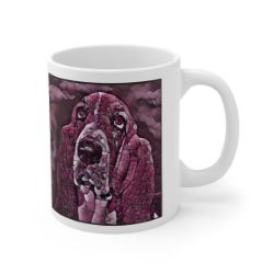 Keep cozy and warm with a nice cuppa, featuring the beloved Bassett Hound dog breed stylized in our Coloromo Plump Wine art on a ceramic mug. Lead and BPA-free, these durable mugs are also microwave & dishwasher-safe. Made of white, resilient ceramic in an 11-ounce size, this is the perfect gift for coffee, tea, and hot chocolate lovers.