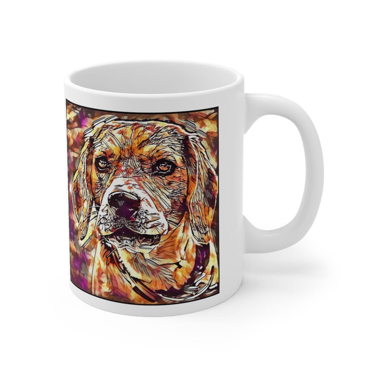 Keep cozy and warm with a nice cuppa, featuring the beloved Beagle dog breed stylized in our Coloromo Hipster art on a ceramic mug. Lead and BPA-free, these durable mugs are also microwave & dishwasher-safe. Made of white, resilient ceramic in an 11-ounce size, this is the perfect gift for coffee, tea, and hot chocolate lovers.