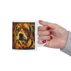 Keep cozy and warm with a nice cuppa, featuring the beloved Beagle dog breed stylized in our Coloromo Painterly art on a ceramic mug. Lead and BPA-free, these durable mugs are also microwave & dishwasher-safe. Made of white, resilient ceramic in an 11-ounce size, this is the perfect gift for coffee, tea, and hot chocolate lovers.