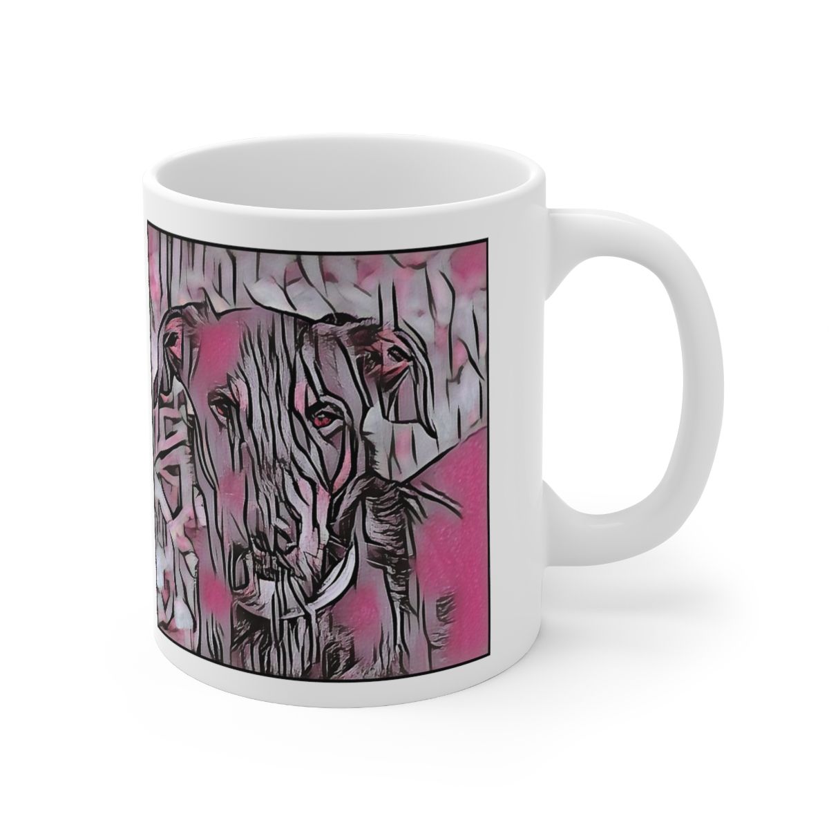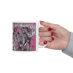 Keep cozy and warm with a nice cuppa, featuring the beloved Beauceron dog breed stylized in our Coloromo Comic Pink art on a ceramic mug. Lead and BPA-free, these durable mugs are also microwave & dishwasher-safe. Made of white, resilient ceramic in an 11-ounce size, this is the perfect gift for coffee, tea, and hot chocolate lovers.