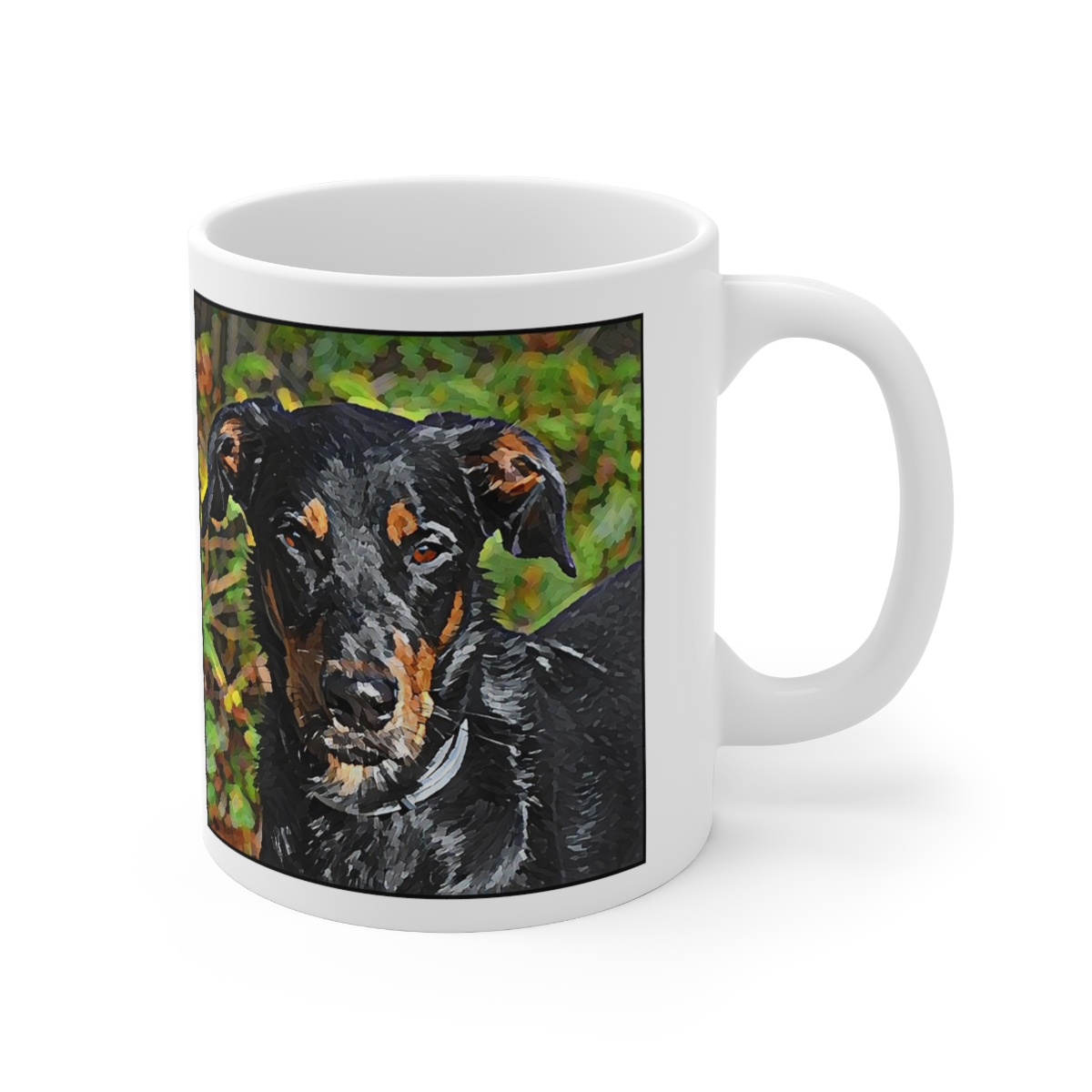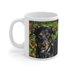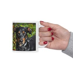Keep cozy and warm with a nice cuppa, featuring the beloved Beauceron dog breed stylized in our Coloromo Lord Lil Bit art on a ceramic mug. Lead and BPA-free, these durable mugs are also microwave & dishwasher-safe. Made of white, resilient ceramic in an 11-ounce size, this is the perfect gift for coffee, tea, and hot chocolate lovers.