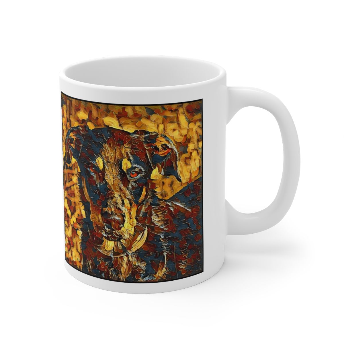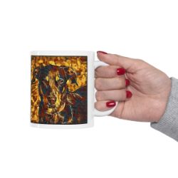 Keep cozy and warm with a nice cuppa, featuring the beloved Beauceron dog breed stylized in our Coloromo Painterly art on a ceramic mug. Lead and BPA-free, these durable mugs are also microwave & dishwasher-safe. Made of white, resilient ceramic in an 11-ounce size, this is the perfect gift for coffee, tea, and hot chocolate lovers.